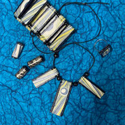 Aus Resten von Kleisterpapieren sowie aus selbst gestalteten Papieren, stellen wir Schmuckstücke wie Halsketten, Armbänder, Ohringe oder Broschen her.