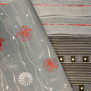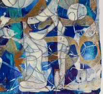 Gestaltung einer persönlichen, einzigartigen Komposition, inspiriert von der Geometrie und Harmonie des Modernismus. Die farbliche Umsetzung erfolgt in der Technik der Aquarellbatik auf Seidenpapier.